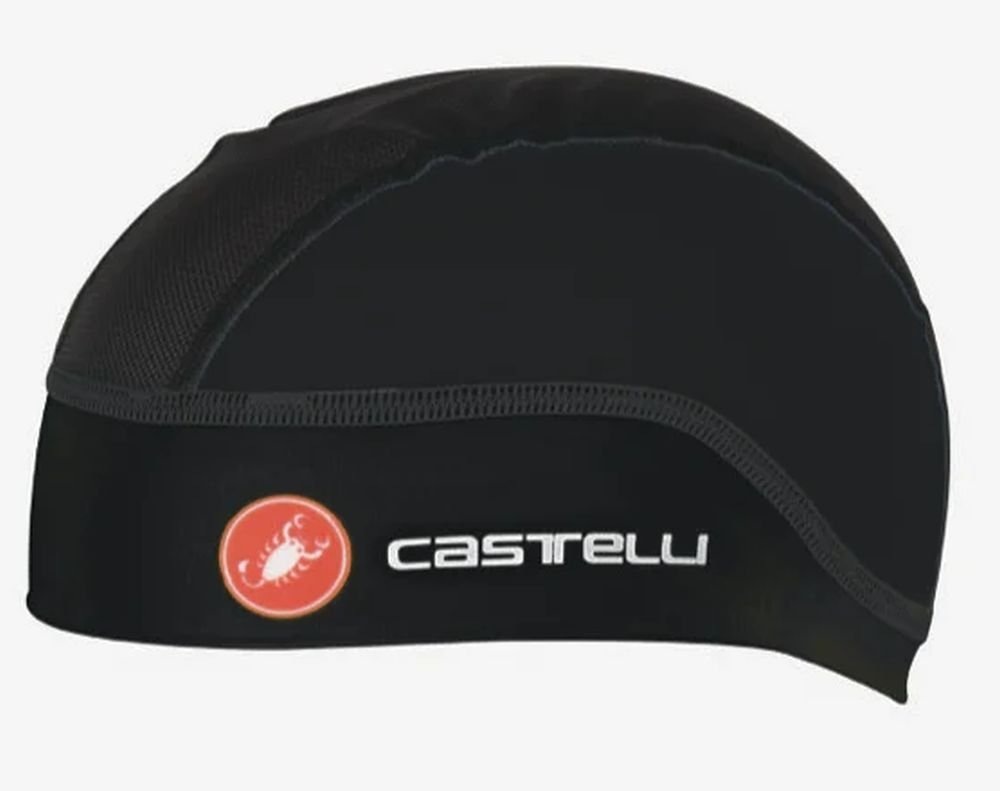 Die Sommer Skull Cap Radmütze von Castelli wurde speziell für den Einsatz unter deinem Fahrradhelm gefertigt. Ein großflächiger Mesh-Einsatz oben verspricht eine optimale Belüftung und einen raschen Feuchtigkeitstransport.
