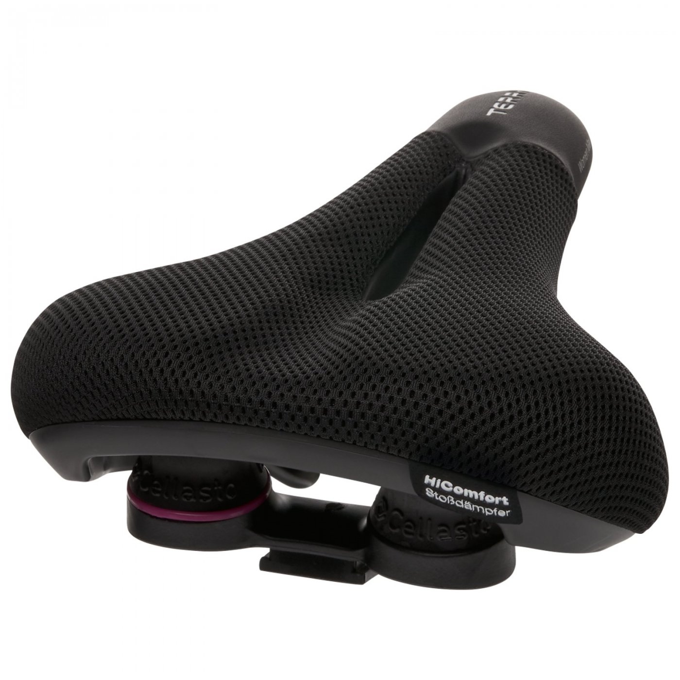 Die breite Auslegung im hinteren Sitzbereich sorgt in Kombination mit Gelpads (Fisio GTC Gel) für effektive Druckverteilung. Der schlanke Schnitt im mittleren und vorderen Bereich erlaubt das bequeme Variieren der Sitzposition. Speziell entwickelt für eine eher aufrechte Sitzposition, bei der ein großer Teil des Körpergewichts auf den Sitzknochen ruht. Besonders rückenschonend dank hocheffizientem Cellasto®-Dämpfungssystem, gemeinsam entwickelt und hergestellt mit BASF® in Deutschland. Ideal für den Langstrecken- und Toureneinsatz.