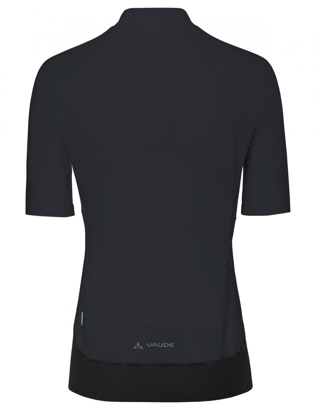 Das sportliche Furka Full-Zip Fahrrad Trikot für Rennradfahrerinnen vereint Funktionalität und Stil für den nächsten Groupride. Dank des sehr elastischen, ultraleichten Materials bietet es perfekten Tragekomfort und Bewegungsfreiheit. Das atmungsaktive, schnelltrocknende Gewebe und der integrierte, große Mesh-Einsatz im oberen Rückenbereich sorgen auch bei intensiven Fahrten und schweißtreibenden Anstiegen für eine ideale Klimaregulierung. Eine zusätzliche Möglichkeit zur Belüftung bietet der durchgehende Reißverschluss. Der betont körpernahe Schnitt ist speziell für ambitionierte Rennradfahrerinnen konzipiert: hinten etwas länger und vorne kürzer, um auch in sportlicher und aerodynamischer Position eine optimale Passform zu gewährleisten. Die reduzierten Nähte vermeiden Reibung und Druckstellen. Am Saum hält ein extra breiter, elastischer Teil mit Silikonpünktchen das Damen Fahrrad Trikot an Ort und Stelle. Die Ärmel sind zudem extra lang geschnitten. Drei offene Rückentaschen bieten praktischen Stauraum, wobei sie leicht schräg geschnitten sind, um einen leichteren Zugriff beim Fahren zu ermöglichen. Eine kleine Reißverschlusstasche sorgt für sicheren Platz für Wertsachen. Für das perfekte Rennrad-Outfit lässt sich das Trikot hervorragend mit den Furka Bib Tights kombinieren. All das macht das Furka Full-Zip Fahrrad Trikot ideal für sportliche Rennradfahrerinnen, die auch auf langen Ausfahrten unterwegs sind und auf Qualität, Leistung und Komfort setzen. Das VAUDE Green Shape-Label steht für ein umweltfreundliches, funktionelles Produkt aus nachhaltigen Materialien.- Sportives Damen Radtrikot für ambitionierte Rennradfahrerinnen
